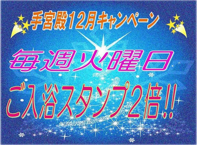 12月は 毎週火曜日 ご入浴スタンプ2倍\(^o^)/