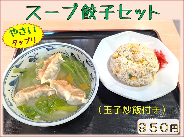 スープ餃子セット(玉子炒飯付き) 950円 2階お食事処にて販売中